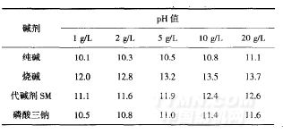表1不同碱剂及其用量对pH值的影响