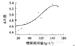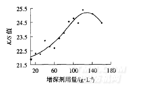 图1增深剂用量与红色平纹棉织物K/S值的关系