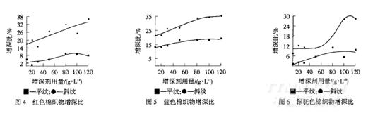不同织物结构、颜色的棉织物增深效果见图4~6.