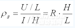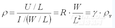 ②表面比电阻ρs(Ω):单位长度上的电压(U/L)与单位宽度上流过的电流(I/H)之比。