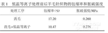 2.1 低温等离子预处理对羊毛针织物性能的影响