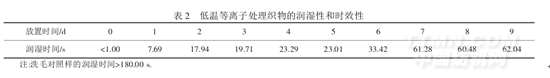 蛋白酶处理前进行预处理,使羊毛鳞片外角质层中的二硫键打开,提高羊毛的亲水性,使蛋白酶容易接近蛋白质分子链,发生吸附和催化反应.[8]传统采用H2O2预处理与蛋白酶结合.本文采用低温等离子作为蛋白酶的预处理,分析低温等离子-蛋白酶联合改性对羊毛性能的影响,结果如表3 所示.