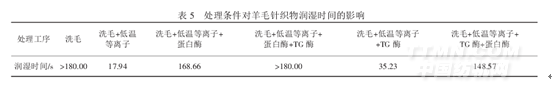 2.4 低温等离子-蛋白酶-TG 酶处理(联合处理)对羊毛针织物性能的影响