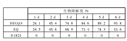 参照文献[8]所述的方法对DEGQS和D1821进行生物降解试验,结果见表5。
