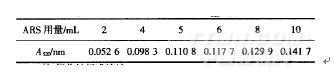 表1显色剂ARS用量对A的影响