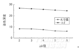 分别调节pH值至3、4、5、6、7,对真丝织物染色的结果如图4和表6所示。