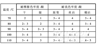 由表4可知,染色温度为70℃时,耐干/湿摩擦色牢度只有1~2级,未达到国家标准。所以,染色温度选择80、90、100℃较为合理。