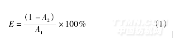 式( 1) 中: A1和A2分别为初始吸光度和染色残液吸光度。