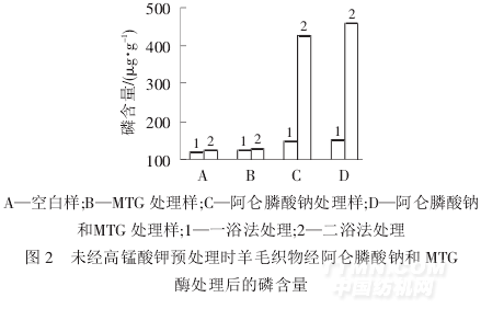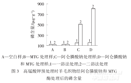 2.2 阿仑膦酸钠/MTG 处理后织物的磷含量