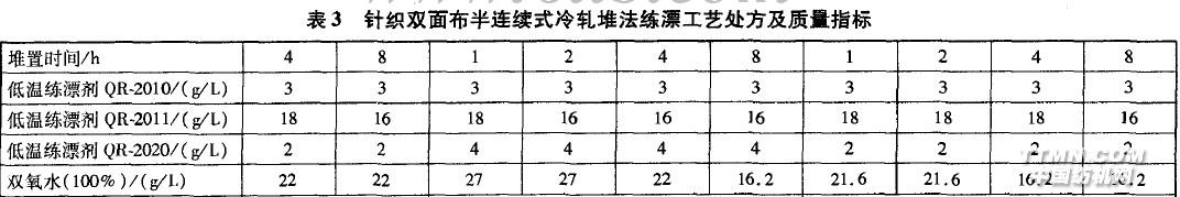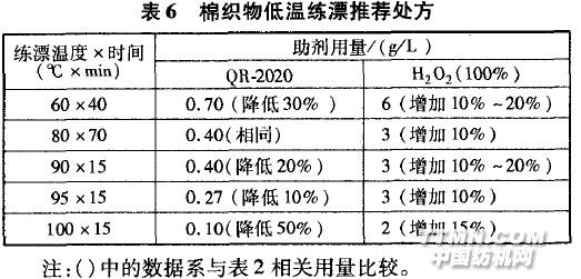 2.2.4 注意事项(1)有效合理地确定低温练漂剂QR一2010、QR一2011、QR-2020及双氧水用量,是低