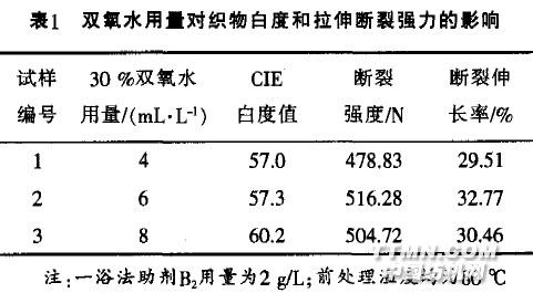 从表l中数据可以看出,随着双氧水用量增加,白度值逐渐增大,而开始时增