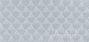 如图所示,这种间隔织物作为一种罩杯材料已经投入生产,它的一面带有花纹,主要用于内衣和高级运动服上。因为这种织物具有很好的延伸性,所以服用性能极好。织物的间隔高度大约为3mm,它具有很好的透气性。借助于花梳的编织,间隔织物工艺反面的外观得到了改进。这里选用的是白色纱线,编织的花型柔和美观。如果纱线具有一定的颜色,花型效果将更为突出。