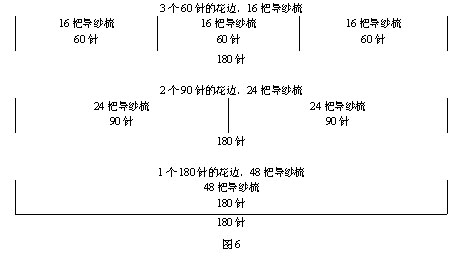 如图6所示,在MRSEJF53/1/24机器上,编织180针的花纹循环。48把花梳可以生产不同宽度的花边。