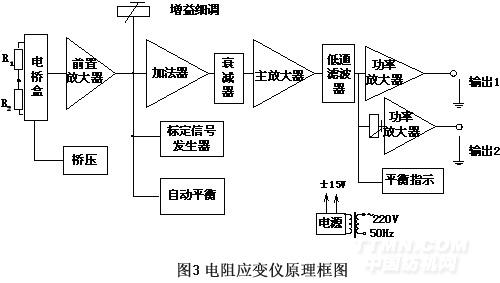 YD-28A型动态电阻应变仪的工作原理框图如图3所示,电压输出端1与带USB接口的数据采集仪的输入端相联。其主要功能就是对采集的信号进行放大、滤波 [3] 。