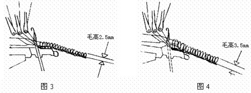 另外经编毛圈织物剪毛后的毛绒高度一般不应超过3mm,主要是因为较高的毛绒在使用过程中会发生畸变,并会产生不适当的光泽和臃肿的外表,另外从生产角度考虑也不够经济。