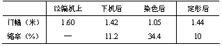 由于网眼织物的横向缩率较大,特别在染色后,门幅减小了34.4%左右。染色、脱水后,上树脂、短环预烘、焙烘均在该门幅下进行,然而定形时门幅约扩大0.4米,这对树脂的拉力过大,将导致树脂膜断裂。因此我们应该在染色前增加一次预定形,使其幅宽接近定形幅宽。