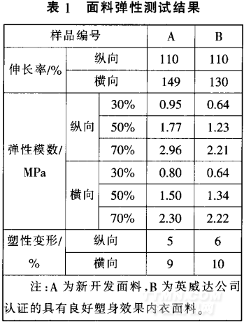 2.1 面料成分和规格 本次开发,织坯布23 kg,此数 量足够做出合理规格 成品经测 试,成分、规格数据如表1所示:
