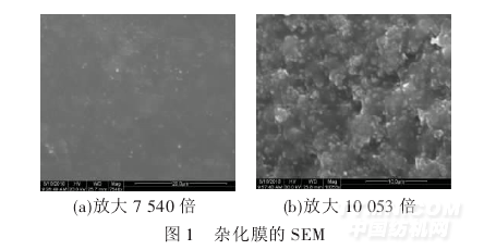 使用FEI Quanta 200 扫描电镜观察杂化膜表面形态以及表面的孔隙情况,操作电压15 kV.