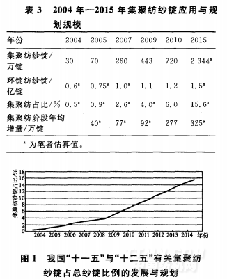 按照“十二五”规划,未来5年集聚纺纱技术将 迎来一个规模扩展速度最快、纱锭总规模3倍扩张 和集聚纺纱线产能3倍增加的历史性发展机遇。 一个大胆的推测是:“十二五”期间集聚纺纱技术仍将可能是一个超规划超预期的跨越式发展阶 段。其理由基于以下3个方面:①集聚纺纱技术历 史发展的轨迹和惯性;②与国际先进水平的差距; ③建设纺织强国的宏伟目标。 当然建设纺纱强国的指标不一定直接包括集聚 纺纱锭规模和比例,但是既然政府和行业已经把纺 织强国的希望寄托在新技术的应用上,又在纺纱新技术和新结构纱线中将集聚纺纱列在重要位置,那 就没有理由不与国际先进水平作比较。设想一下, 到2015年我国集聚纺纱锭规模约达到总纱锭规模 的25 ,即接近先进国家目前的水平,则集聚纺纱 锭约为3 750万枚,那将是目前规模的5倍以上,净 增加3 000万锭以上,年增加量要达600多万锭。