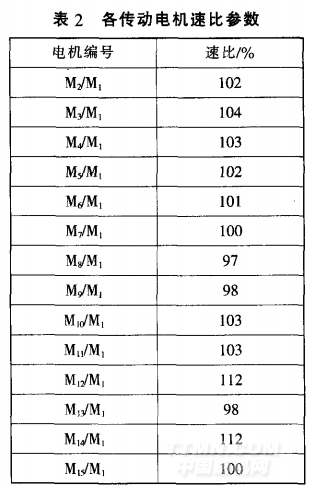 该机采用直辊与拉幅针铗链 相结合的平幅丝光方式.在提升丝 光效果的同时又能较好地控制横 向张力,使丝光布的左、中、右密度 保持一致。同时,该丝光机采用转 速比控制各道交流变频电机.以确 保低张力和轻柔处理 双丝光单面 汗布各传动电机与主电机(M1)的 速比如表2所示 丝光机后段配有 新型转鼓水洗,具有高效、节水、省 汽的特点