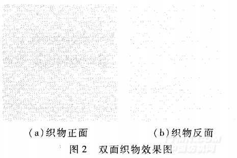 双面织物的经密可以参照14.6 rex织物的经密设定,设置为512根/10 cm。由于织物选用的是双面组织,因此纬密按常规织物纬密的两倍设定,设置为630根/10 cm。