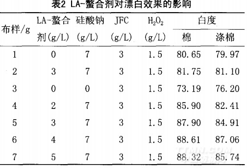3.2 LA-螯合剂对漂白的影响