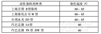 较适宜的活性染料有乙烯砜型染料(55℃),一氯均三嗪/乙烯砜型双活性基染料(60~70℃),一氟均三嗪/乙烯砜型双活性基染料(55~60℃)。