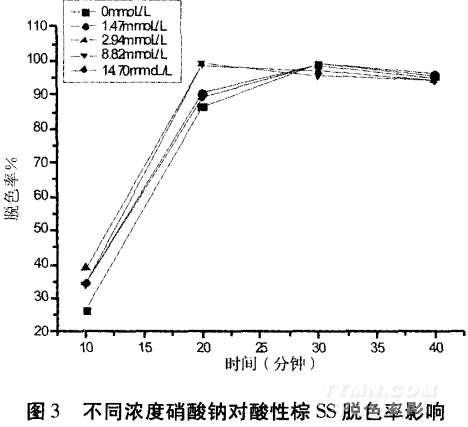 2.3硝酸钠对酸性棕SS脱色性能的影响