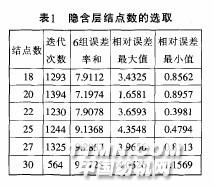 对于网络模型隐含层的神经元数的确定.目前在理论上并无规律可循.可通过对不同神经元数的网络性能进行综合比较来确定[9]。本文通过对不同隐含层结点数的考察.综合比较迭代次数