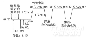 由于纤维本身呈黄色,退浆、精练后必须进行漂白才能满足染色要求,但其耐碱性和耐热性差,所以只能在弱碱性条件下漂白。