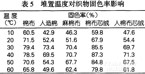 2.2.5堆置温度对织物固色率的影响
