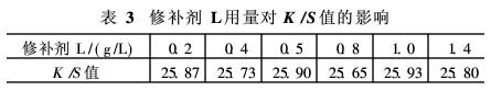 从表3可以看出,修补剂L用量在1. 4 g/L以下时,得色深度几乎没有变化,考虑到成本因素及匀染性要求,确定其用量为0. 2~0. 5 g/L。