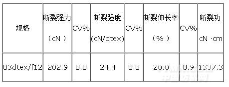 对83dtex/f12 的PLA 长丝在 单纱强力仪上进行测试( 测试标准:GB/T 9995-1997) ,测 试条件: