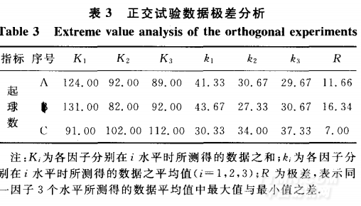 由表3和4可以看出,因素B对织物起球数的影响较为显著,B2优于B1和B3,B3优于B1,这表明整理剂用量(o.w.f)是抗起毛起球整理中最主要的影响因素,但整理剂并不是用得越多越好;因素A也存在一定的影响,在显著水平较大时,略微显著;因素C不显著,说明整理时间对抗起毛起球整理效果的影响不是很明显,所以因素主次顺序为B>A>C.其中,A2和A3相差不大,C1,C2和C3的差别也较小,从节省时间资源成本角度考虑,可选择A2,C1.综合这3个因素,选择最佳工艺参数为A2B2C1,即整理温度为40℃,整理剂用量(O.w.f)为4,整理时间为20min.按照此_丁艺参数对纳米抗菌针织物进行整理,并参照起毛起球评级标准进行评级,试验结果如表5所示.