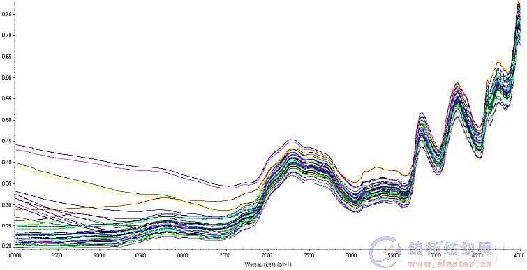 图2 优选波段后的棉\氨纶样品近红外光谱图