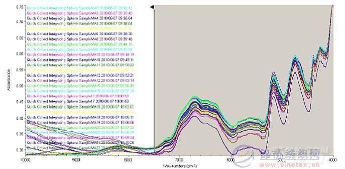 TQ软件自动优选波段为:7515.12 cm-1~4004.97 cm-1,见图2。采用一阶导数方法对光谱进行预处理。