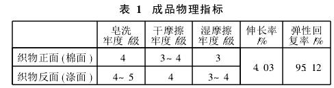 经上述染整工艺加工后,测试成品各项性能指标见表1。