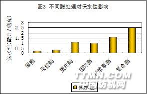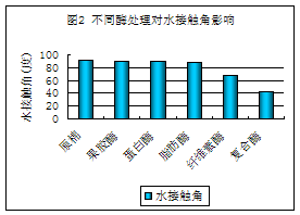 棉纤维初生胞壁的杂质中,纤维素占的比重最大,(约54%), 因此单独用纤维素酶对提高润湿性有一定作用,但不明显。原因是果胶质作为粘合剂将其它杂质粘合起来,不连续地覆盖在纤维表面,使得纤维素酶难以充分接触纤维素杂质。单独使用果胶酶,也不能改善润湿性,可能因为果胶质也分布在非纤维素成分的下面,果胶酶难以接近。纤维素酶与果胶酶混合处理,产生增效作用,可能因为通过纤维素酶对纤维素杂质的部分水解,促使果胶酶接近果胶质。果胶质的水解,既有助于纤维素酶的进一步作用,又有助于解除其它杂质成分之间的附着力,使杂质脱离纤维母体,从而提高了织物的毛效。试验结果还表明,复合生物酶处理,达到同样效果,各组分酶的用量小于单一组分的用量,同时对织物重量损失小,从而强力损失小。因此,复