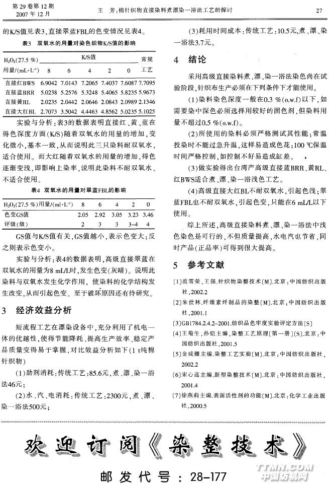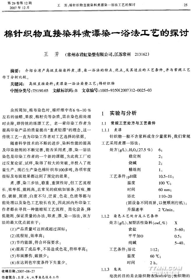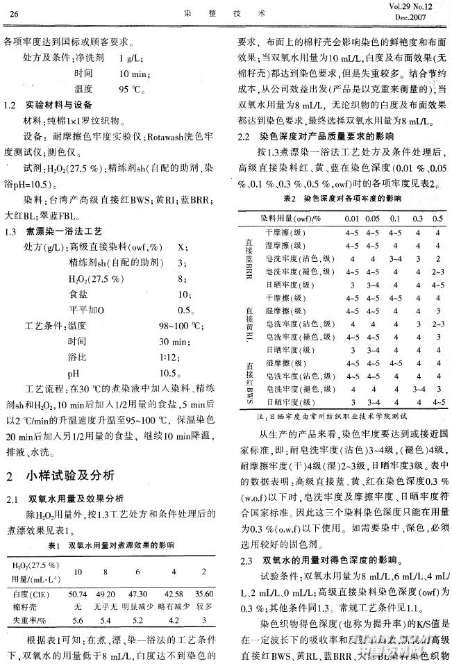 棉针织物直接染料煮漂染一浴法工艺的探讨