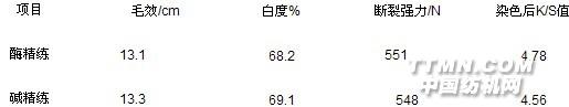 我们要关注:(1)纤维的去杂、膨化以及精练效果(2)增白剂的选择以及对纤维的亲合力(3)纤维的强力损伤结论 通过实践结果表明,亚麻纤维在前处理精练后,有必要用纤维素酶进行一道除毛工艺,全可以得到优于碱处理的柔顺、光洁等效果。