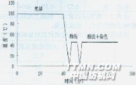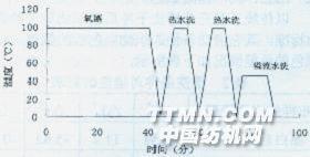 图1 传统氧漂及水洗工艺氧漂及过氧化氢酶净洗工艺曲线如下所示: