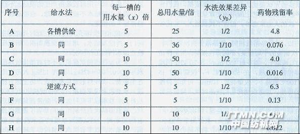 一般洗涤中使用温水的买例很多,这时,采用这种逆流方式对节能有利。 由表1可以看出:逆流用水量仅为各槽自供的40%,且洗涤效果好。逆流供水由于用水少,因此,升温用的蒸汽亦降低。 5槽平洗槽自给水每小时补充的水(溢流排出水量)约为7.5 t,逆流水洗每小时溢流排出水量为单台自给水的2倍(3t),而总的溢流排水量仅是自给水的40%。每年按6000h工作计,节约的60%水量就是27kt,节省蒸汽2.7k。 3.2振荡水洗提高扩散能力,缩短扩散路程。 声化学加工的潜在利益极高。使用声波在液体一介质中振动,可以粉碎工艺液体中的聚合体,增加洗涤剂的表面活性,在退、煮、漂工艺水洗中,可提高化学药剂的扩散速度、活化助剂和促进反应。声波弹性振动具有分散、脱气及扩散功能。在弹性振动下,化学品的微粒集聚体被分解成均匀的分散体,提高了化学助剂的扩散、渗透速度。在声波的作用下,介质(溶液)中的粒子振荡,其方向与波的传播方向平行而形成纵向波,而分子的纵向振动产生压缩和稀疏现象,即高和低的局部压力区,产生闸阀效应,把溶液或截留的气体、空气分子,从织物纱线的交织点处、纤维间隙处和毛细管内驱赶到溶液中,随之排除,这就是声波的脱气功能。洗涤液的搅拌振荡,洗涤速度是按指数倍率加快的。提高洗液温度和采用搅拌振荡洗液,都是致力于破坏“