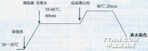 图为酶氧一浴-低温漂白工艺处理后的纱线、针织布 2、纯棉梭织布的生物酶前处理工艺 传统的纯棉梭织织物前处理,一般采用高温强碱蒸煮工艺。该法能耗大,且使用过多的有害化学品,需经多次漂洗工序,加重了污水处理负荷,对纺织品本身也造成损害。生物酶前处理工艺用量少,处理条件温和。废水可生物降解,无污染,利于生态环保,而且还可以改善和提高纺织品的服用性能。生物酶前处理不仅促进了清洁生产,而且大大缩短了工艺流程,大幅度降低了水、电、汽等资源和能源的消耗,改善了生产环境。经测算,水污染物和污水排放量减少了50%以上,降低了污水处理费用,综合成本下降40%左右,对印染企业实现清洁生产,促进印染行业可持续发展具有积极意义,根据加工设备、加工方式的不同,本文分卷染机浸染工艺和长车连续轧染前处理工艺分别进行讨论。 (1)卷染机浸染工艺 应用工艺参数: ◆KDN精炼酶 1%(o.w.f) ◆高效渗透剂 1~2g/L ◆低温漂白剂 3 g/L◆温度 55℃~60℃◆PH值 7-9◆时间 60~90min