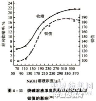 1. 烧碱浓度只有当烧碱浓度达到某一临界值以后,才能引起棉纤维发生显著的不可逆的溶胀 根据试验,当碱液浓度大于8%时,棉纤维的直径和长度随碱液浓度的提高而分别急剧增加和缩短 纤维收缩规律和直径增大规律相似.jpg)
