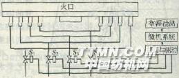 图3-5 火焰有级调幅自控示意如图3—5所示,该系统采用光电传感器检测进入烧毛加工的实际坯布幅值,输入微机控制装置,与设定布幅值比较,自动控制压缩空气电磁阀S1~S4,同时相应调节高压离心鼓风机的转速,控制火焰强度。系统经接口驱动电路指令S4电磁阀开启,火焰宽度为1050mm;当S3、S4开启时,火焰宽度为1