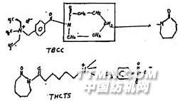 五、阳离子活化剂(TBCC/THCTS)的应用及与NOBS的效果比较[14-15,18-21] 继TAED及NOBS之后,又开发了季铵盐类(阳离子型)过氧化物的活化剂品种,美国北加州大学纺织学院和土耳其伊斯坦堡大学的科研人员,对阳离子活化剂在双氧水漂白液中的应用效果进行了系统试验,并与NOBS作了对比,表明其效果更为优秀。 以N-酰基已内酰胺 (N-Acyl-caprolactam)类中,巳开发应用的二只品种为:TBCC是,N[4(三乙基铵甲撑)苯酰基]已内酰胺氯化物 (N-[4-(Methylammonicomethyl)benzoyl]caprolactam chloride)的简称,THCTS是6-N,N,N三甲基铵甲撑)己酰基己内酰胺对甲苯磺酸 (6-N,N,N-trimethylammonio)hexanoyl aproleotamp-toluenesulfonate)的简称,它们的结构分别如下式所示: