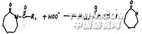 它们在碱性双氧水溶液中,与HOO-阴离子反应,能形成相应的有机过氧酸,其反应通式如式(14)所示