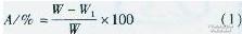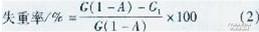 另一块布样精确称重,记为G,经工艺处理晾干后,在烘箱于105℃烘1 h,移至干燥器中恒温30 min,精确称重,记为G1,按式(2)计算失重率: