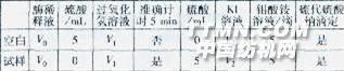 0 前言 棉制品氧漂处理后,若布面和水浴中残留双氧水,将破坏活性染料的反应性基团,使染料与棉纤维之间不能形成有效共价键,造成色浅、色花等染疵。对此,传统方法采用大量热水反复清洗来去除,这样不仅要耗费大量的水、电、汽,工艺冗长,且去除不完全,影响产品质量。采用过氧化氢酶对漂白后的棉制品进行处理可有效解决这些问题。另外,作为天然发酵的蛋白质,过氧化氢酶可生物降解,具有优良的环保性能。 过氧化氢酶的酶活测试有多种方法,如测定反应体系中生成氧气的量,有测压法、电极法等;测定反应剩余过氧化氢的量,一般有高锰酸钾法、碘量法;直接测定反应消耗的过氧化氢的量,则常用紫外速率法。由于碘量法简便、快速,且易操作,因而被广泛应用。酶的生产方式、发酵条件及反应性不同,因而其活力对每一个反应条件都较敏感。了解其中机理及影响因素,对测定酶的活力值具有指导作用,而严格规范操作,呵以得到准确的测试结果。l 试验I.I试剂 1.8 mol/L硫酸,20%碘化钾溶液,10%七钼酸六铵溶液,0.5%淀粉指示剂,0.05 mol/L过氧化氢底物溶液,0.1 mol/L硫代硫酸钠标准滴定溶液,TF-160过氧化氢酶。1.2操作步骤1.2.1 过氧化氢酶溶液的配制 取l mL过氧化氢酶TF-160原液,用蒸馏水稀释,定容至500 mL以备测试。1.2.2酶促反应 吸取一定量的酶稀释液于250 mL碘量瓶中,按照表1的操作以及相关溶液的用量,进行过氧化氢酶酶活的测试,同时做空白试验。根据酶活定义,计算过氧化氢酶酶活力值。 表1 过氧化氢酶酶活分析测试步骤及取液情况