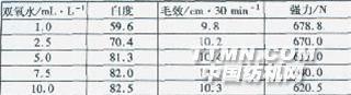 1试验材料及方法1.1材料、药品及仪器 材料120 cm 18/18 520/300纯棉平纹织物 化学药品 精练酶T1151(广州纺织工业研究所),30%双氧水(化学纯,汕头西陇化工),精练剂TF-121(浙江传化),烧碱 仪器与设备UltraScan XE测色仪,H5 KS-1105万能强力机,简易毛效测试仪。1.2试验方法1.2.1棉织物的精练 配制精练酶工作液→室温人布(浴比1:20)→升温到一定的温度,保温一定时间→热水洗两遍→冷水洗1.2.2断裂强度的测定 按GB 423-1987测定,本研究只测试织物的经向强力。1.2.3毛效和白度的测定 毛效按25 cm×5 cm的布样,在简易毛效测试仪上测定30 min的上升高度,白度在UltraScan XE测色仪上测得。